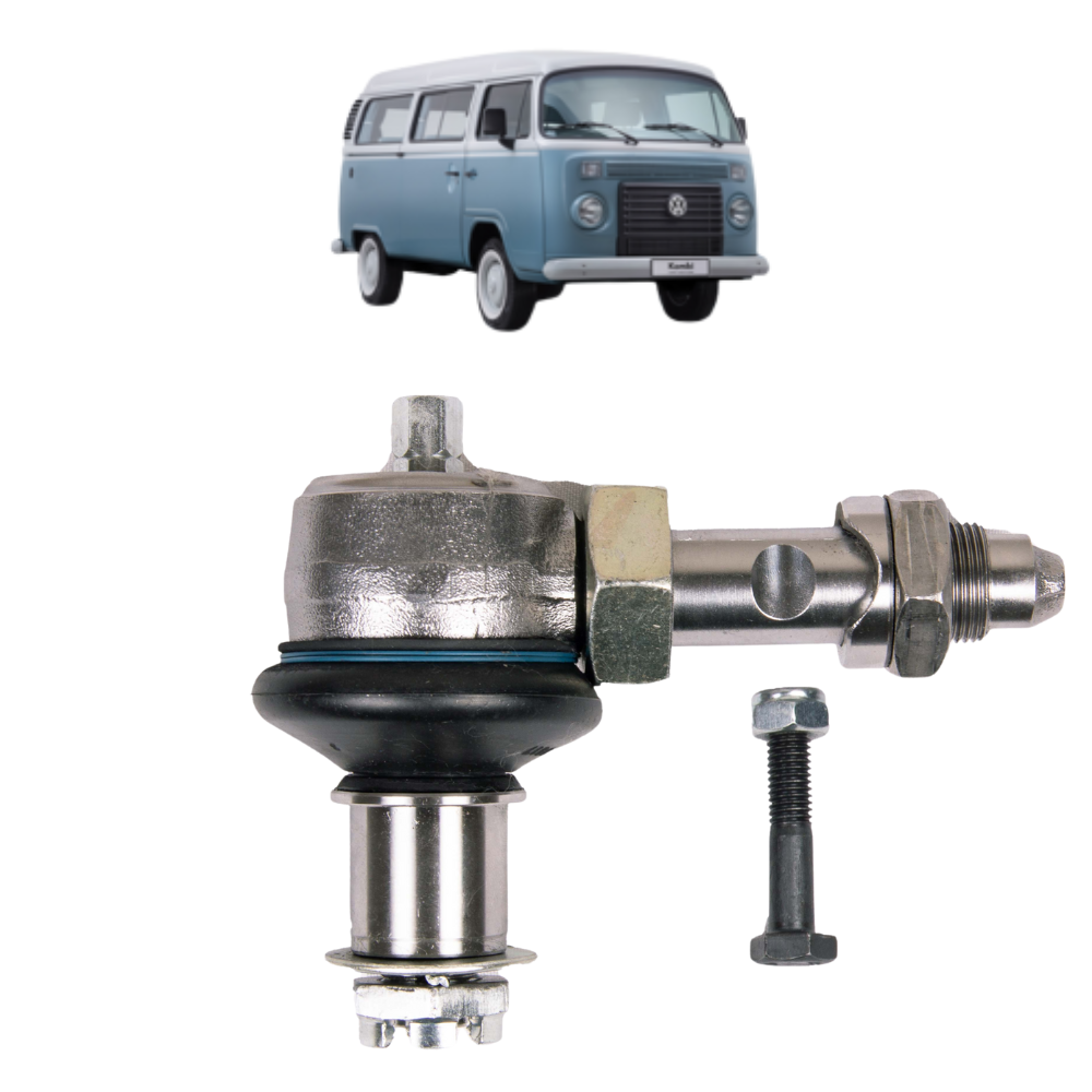 Pivô inferior esquerdo desenvolvido para a suspensão dianteira da VW Kombi. Solução indicada quando o desgaste está concentrado no lado do motorista, sem necessidade de trocar todo o conjunto.